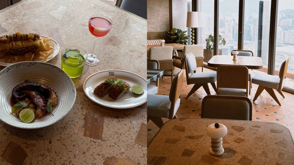 金普頓不只是飯店,更像一種生活風格,而它最迷人的時刻,正是太陽下山後。電梯一路搭到頂樓,便能抵達飯店的亮點,也是最受歡迎的角落——頂樓泳池酒吧 Swim Club。這是香港少數能同時看到維港與九龍天際線的一座泳池酒吧,白天是家庭與好友們放鬆的泳池區,夜晚則變身成開放式派對現場,20 米恆溫天際泳池、木質甲板、日光床與植物牆圍出一個加州式露天空間,見證城市與海景在此交融成一場夏日夢。