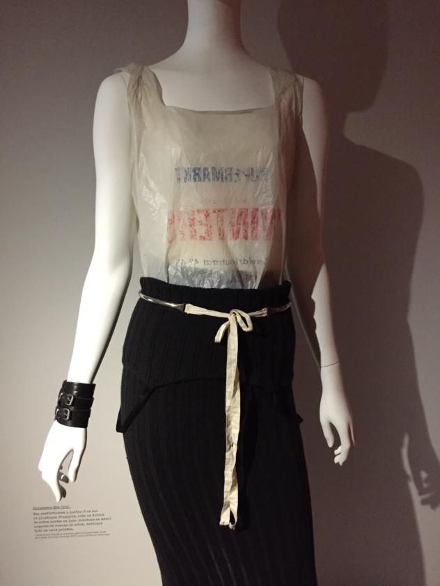 時尚評論家 Alexander Fury 在當年《Margiela. The Hermès Years》展訪問時在《紐約時報》中寫道,「在籌備過程中,曾有一次找不到 1990 年春夏的『塑膠袋背心上衣』(原版是用 Franprix 的塑膠袋),協助佈展的 Martin Margiela 本人就請(安特惠普 MoMu 時尚博物館的總監)Kaat Debo 在比利時超市拿個塑膠袋來重做一件。」
