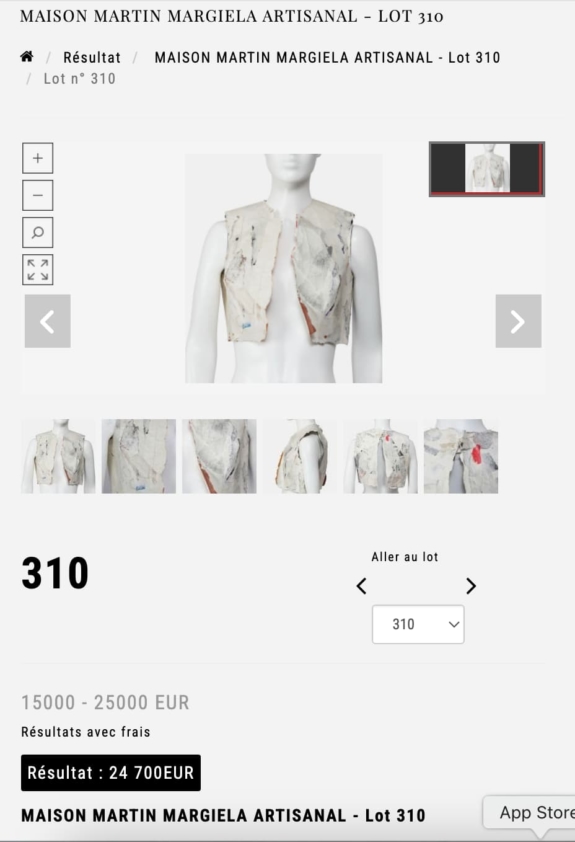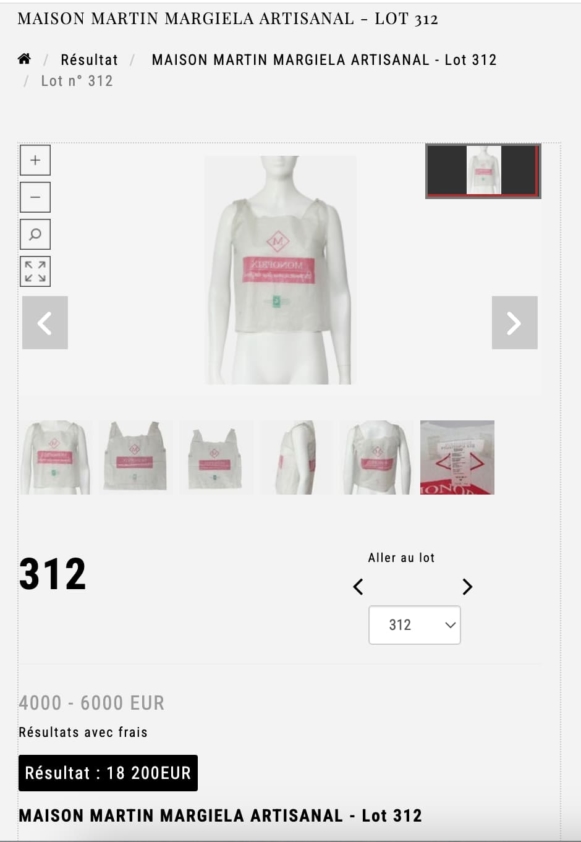 Roberta Valentini 表示相當讚賞團隊的專業,「看他們如何評選出這些收藏讓我很開心,很像我長期以來的工作獲得了肯定…。」而當中的一件 1994 年春夏 Maison Martin Margiela 的「塑膠袋背心」在 11 月 6 日拍賣結束後,引起了關注。