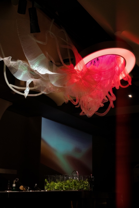由 unDer Lab由套餐經理小綠與主理人 Pei 帶領團隊策劃,本季酒單延伸「荒謬主義」概念,透過與 N/A Lab、RADIUS Interior Design 伴境空間及刺青藝術家 Ray 設計的器皿跨界合作,用圍繞「沙漠中的水母」意象構築出一套帶有超現實色彩的世界觀。