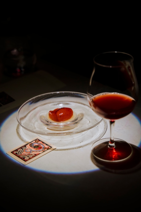 本次套餐共提供約 13 種風味品項,由葡萄酒、調酒、茶款與特製風味液交織呈現,並搭配 5 款小食與冰淇淋,從液體結構到口感層次,展現 unDer Lab 對風土、敘事與味覺關係的持續實驗。