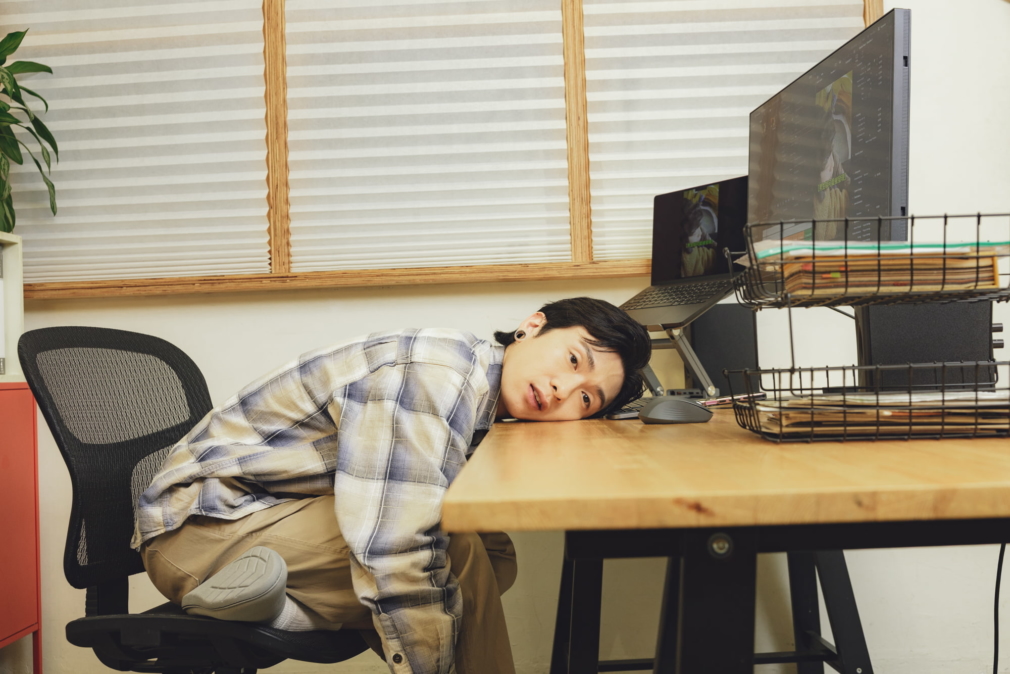 余謝:「剪片真的超傷身體,因為你會太專注,姿勢一直變形。肩膀一定酸,下背跟尾椎那段也會真的不舒服。最可怕的是,你坐著的時候不一定會發現,都是站起來的那一刻,才覺得『哇,好像哪裡不對』。所以對我來說,最需要的不是再撐一下,而是有一個方式,可以讓身體真的被放鬆,不然累積久了會出問題。」