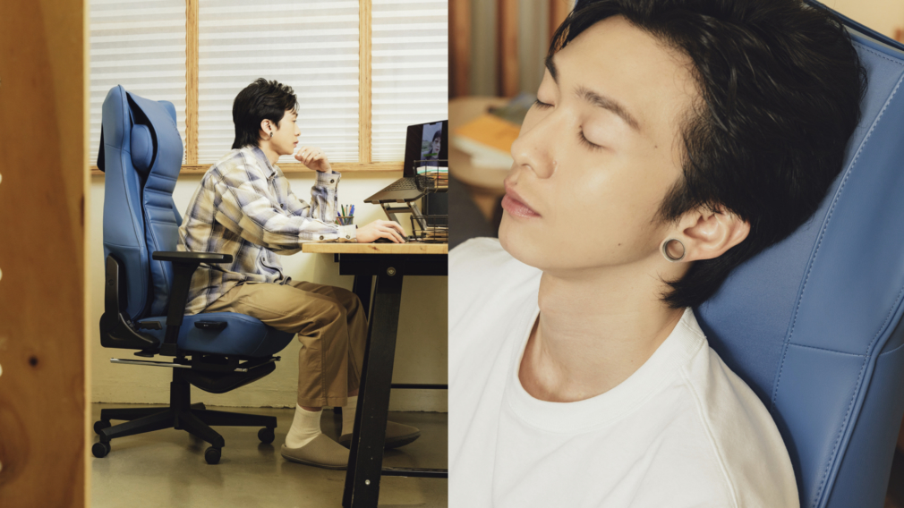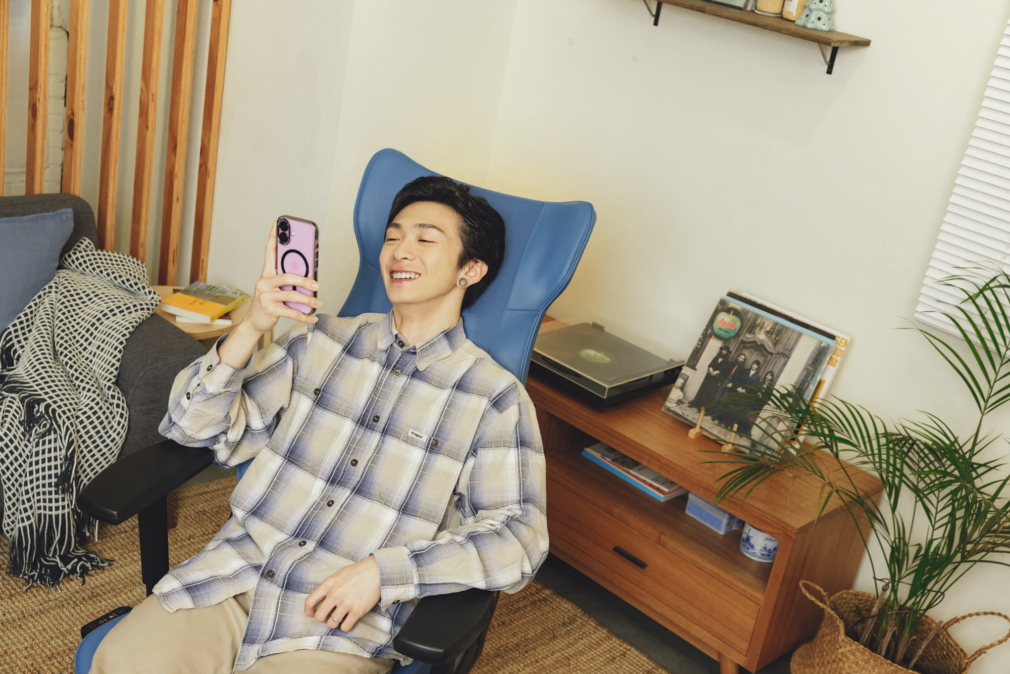 一開始坐上 OSIM 天王工學椅,余謝其實以為它就是一張「可以推著走的按摩椅」——不用插電、移動很方便,對常在家裡不同角落剪片的他來說已經很加分。直到按摩功能一開,更讓他眼睛為之一亮。「這不是一般椅子欸,」余謝笑說,「那個按摩一開始,我真的有被嚇到,當下有一種 VIP 等級按摩待遇的爽感。」原本只是坐著休息,下一秒肩頸被抓住、背部一路被按開,才意識到 OSIM 真的是把他們做按摩椅的那套技術,直接放進這張工學椅裡。
