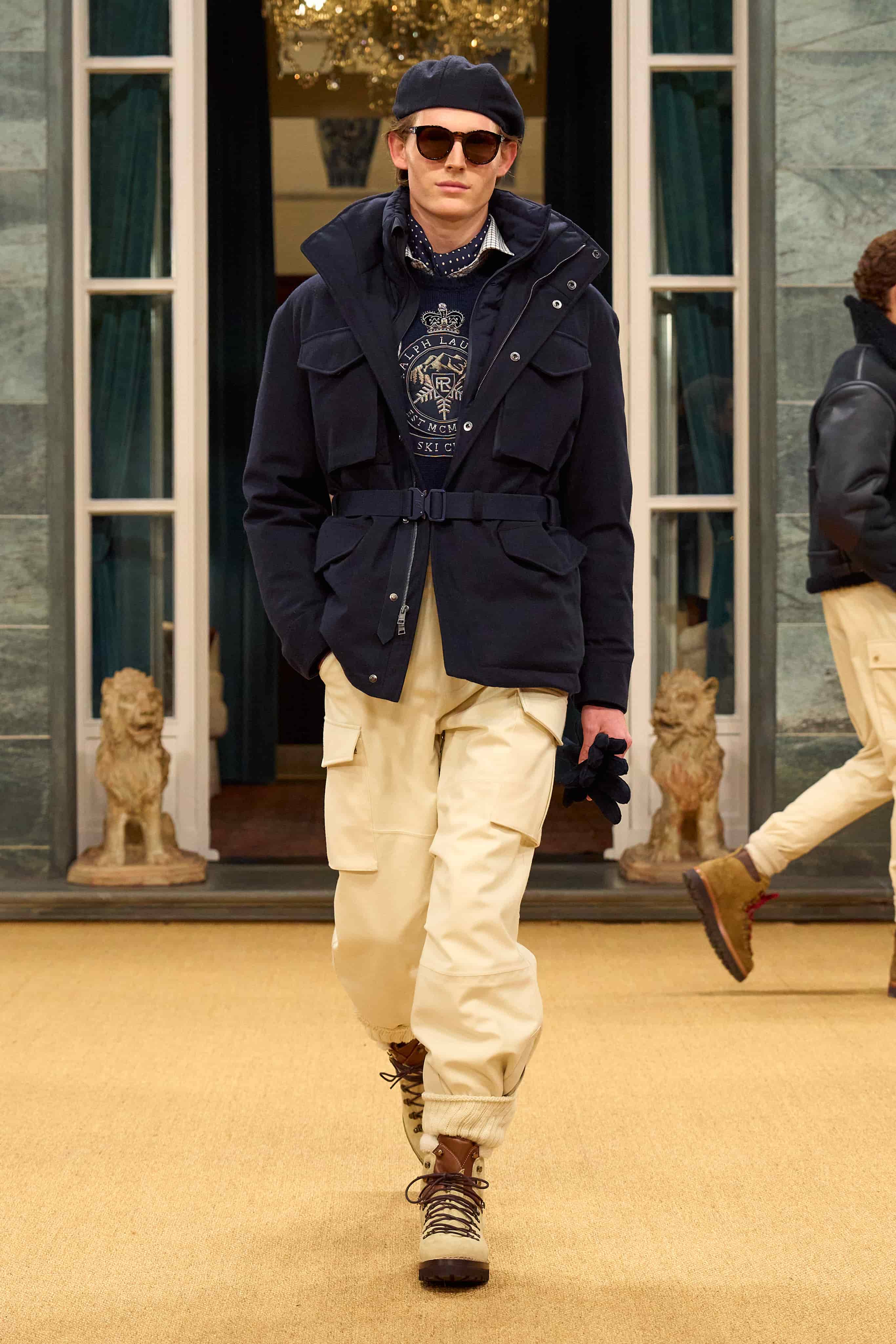 除此之外,Ralph Lauren 也透過意想不到的材質運用,為經典單品注入新生命———刷毛羊毛針織、絎縫外套與功能性外衣被賦予更粗獷深沉的模樣,而原本屬於戶外場景的布料,則被自然帶入城市穿搭之中。整體廓形在刻意放鬆後,讓整體風格多了一層自由奔放的生活氣息。