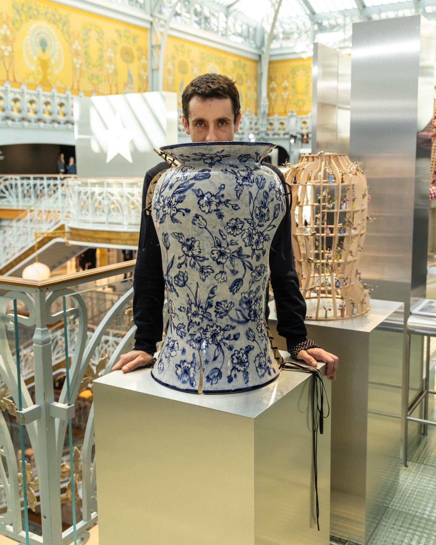 他過去曾在餐廳打過工,在倫敦知名的 Paul Thomas Flowers 擔任過花藝師,也為內衣設計師 Michaela Stark 在展覽中設計過陶瓷雕塑,「我一直是很有創造力的人,有和不同藝術家、品牌、雜誌合作的經驗,但我從沒有機會去做完全屬於自己的東西。」他表示,「疫情過後,我便決定要認真創作屬於自己的作品,也因此『The Narcissist』系列誕生。」