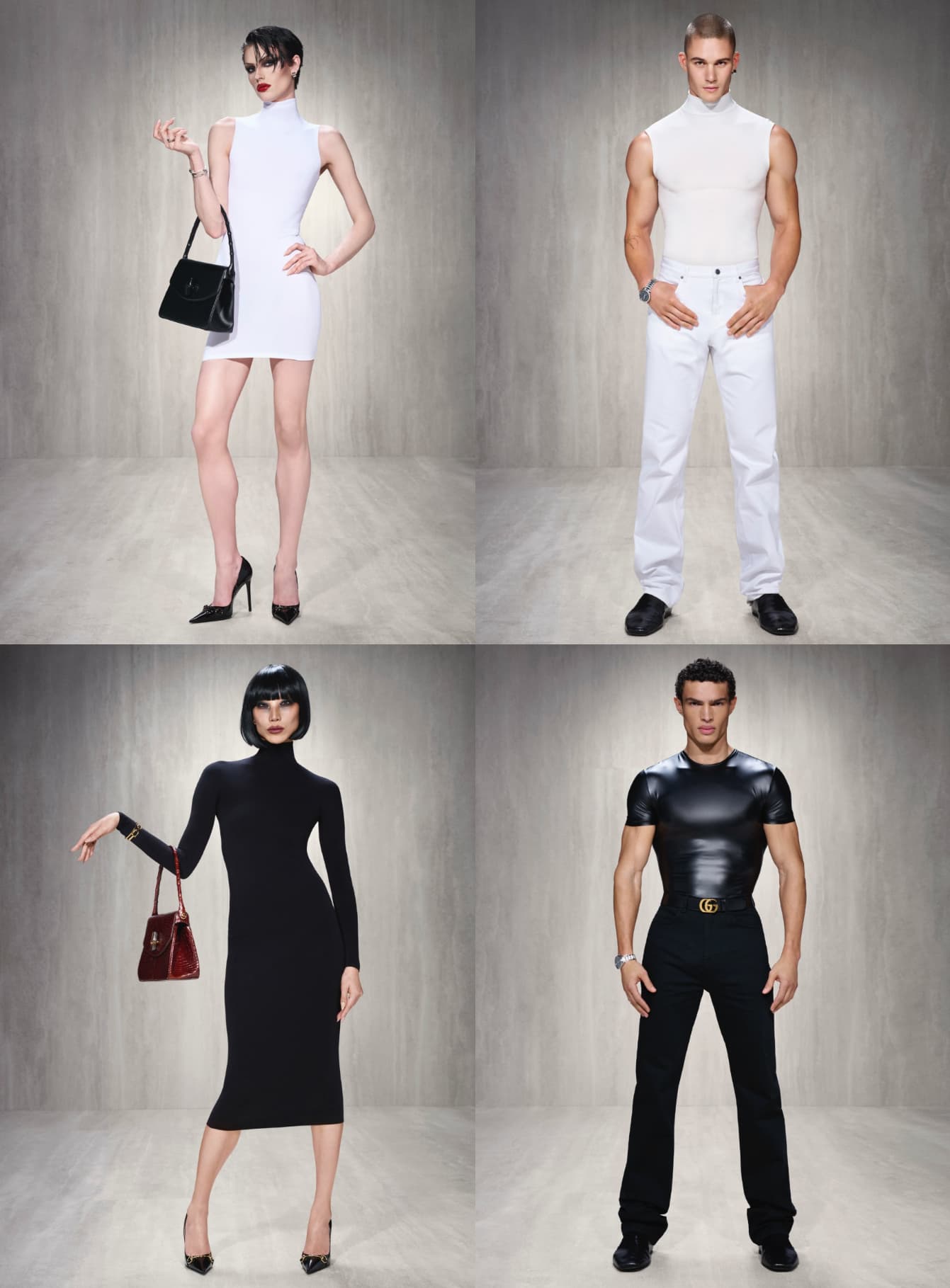 Demna 在他的新聞稿中寫道,並解釋 Gucci 已成功打造出線條極為俐落的服裝——「剪裁盡可能貼近身形,採用幾乎看不見的熱封邊緣,以及經過精密設計的弧形下襬。」