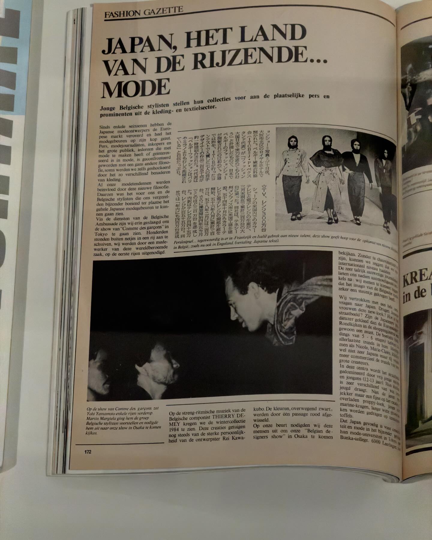 1984 年,受比利時紡織與成衣協會(ITCB)邀請,6+1 位賢能(比利時時尚夢幻隊伍)前去日本進行「日比時尚交流」,對他們來說,這是一趟眼界大開之旅(Martin Margiela 也因此有了分趾鞋/忍者鞋 Tabi 的靈感),而在觀看 Comme des Garçons 秀時,有了這樣歷史性的一幕出現:「在秀場上,山本耀司就坐在後方,Martin Margiela 前去向他介紹這群比利時設計師,並邀請他來看 6+1 在大阪的秀。」(隔年 1985 年的筑波萬國博覽會,他們受比利時官方邀請再度來到日本。)